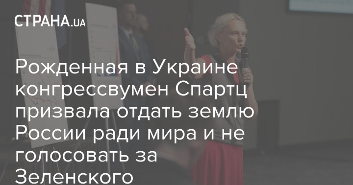 Член Палати представників США українського походження Вікторія Спартц закликала "віддати землю Росії" заради завершення війни та не голосувати за президента України Володимира Зеленського на виборах.