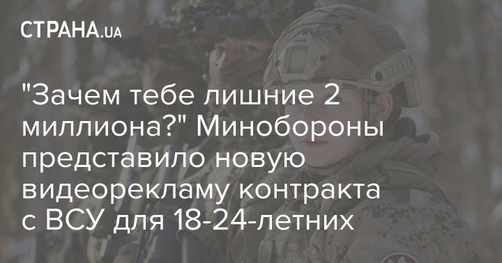 "Навіщо тобі зайві 2 мільйони?" Міноборони представило нову відеорекламу контракту з ЗСУ для 18-24-річних