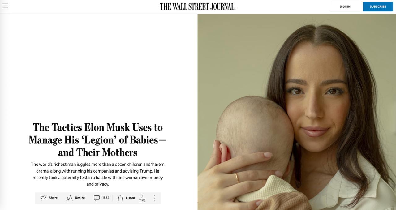 Маск набирає потенційних матерів на своїй соціальній платформі X, після чого "використовує своє багатство, щоб купити мовчання деяких жінок, які мають від нього дітей", пише видання.