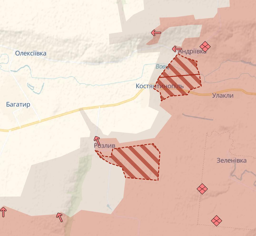 Росіяни наступають у Константинополі, що знаходиться на трасі на Запоріжжя, і на південь - біля Розливу.
