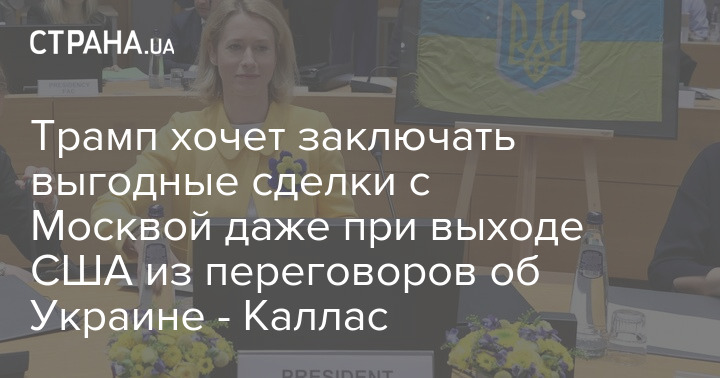 Глава європейської дипломатії Кая Каллас припустила, що навіть якщо Вашингтон відмовиться від посередництва після завершення війни в Україні, президент США Дональд Трамп продовжить поновлення відносин із Росією для укладання вигідних угод.