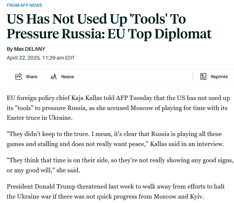 "У них в руках є інструменти, які вони можуть використовувати для тиску на Росію. Вони не використовували ці інструменти. Якщо вони зараз йдуть (з переговорів по Україні - Ред. ) не використовуючи інструменти, які насправді у них в руках, то у мене виникає велике питання: чому?" - сказала Каллас.