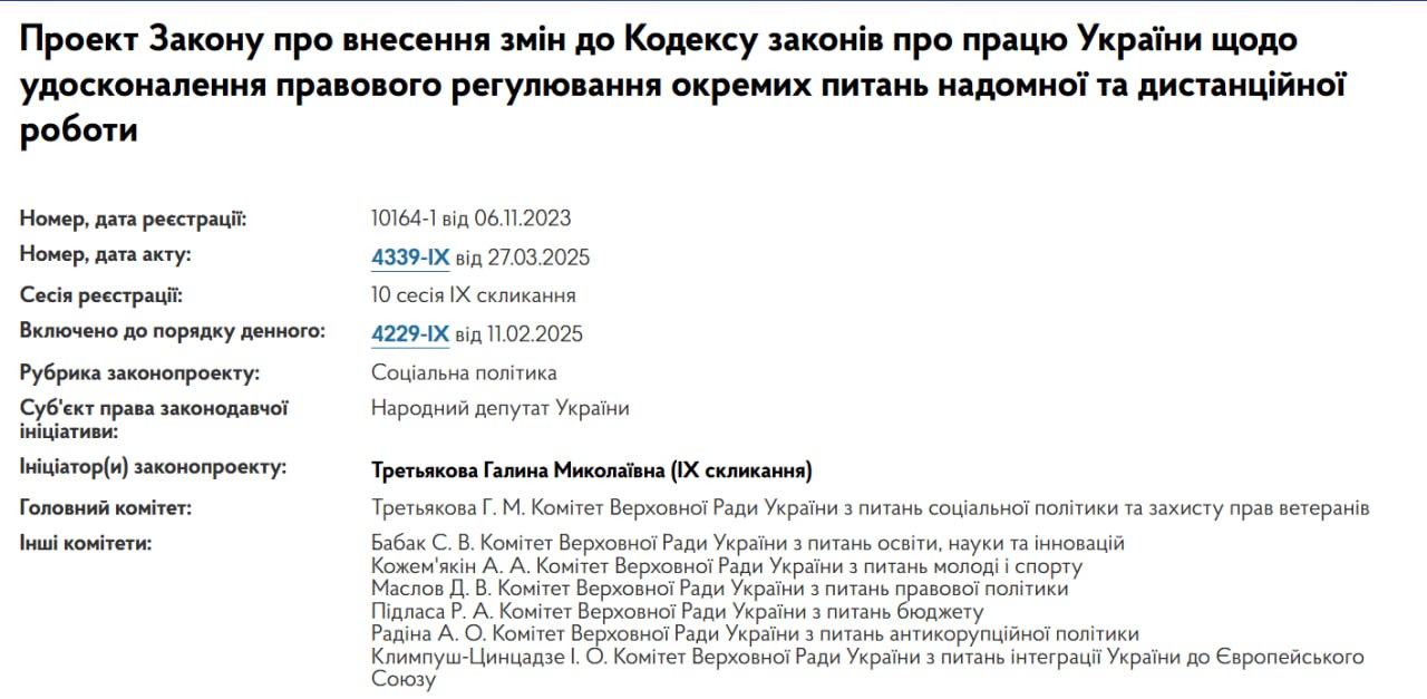 Про це йдеться у картці законопроекту на сайті Верховної Ради.