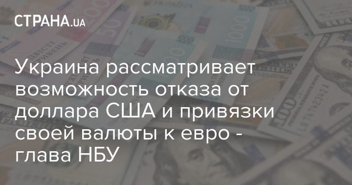 Україна розглядає можливість відмови від долара США і більш тісної прив'язки своєї валюти до євро "на тлі розколу світової торгівлі та зв'язків з Європою, що ростуть".