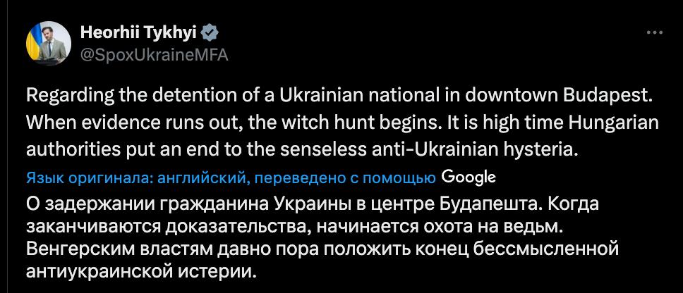 Українське МЗС назвало затримання українця в Будапешті "полюванням на відьом" та "антиукраїнською істерією".