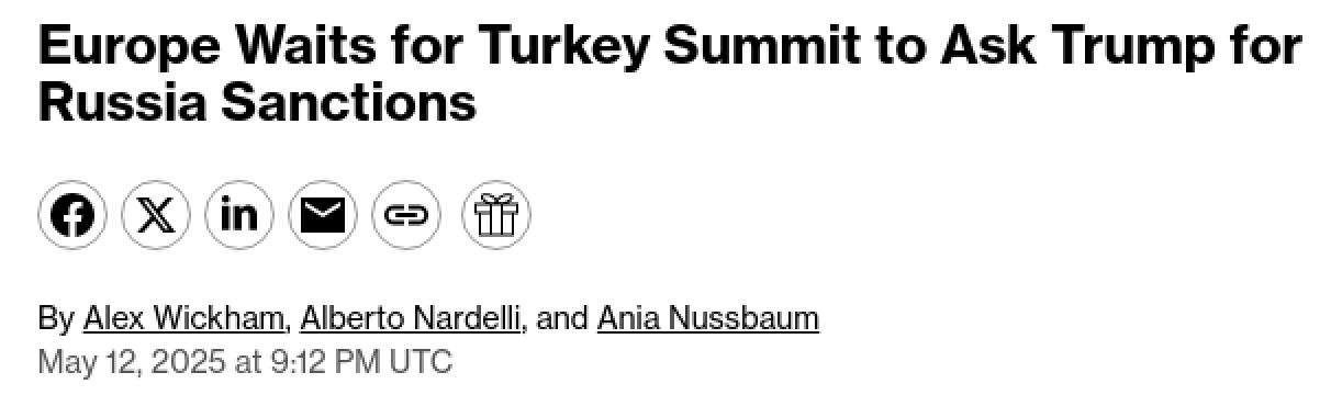 У публікації йдеться, що європейські лідери готові чекати до переговорів у Стамбулі, а також можливої зустрічі між президентом України Володимиром Зеленським та російським лідером Володимиром Путіним, "перш ніж підштовхувати США до оголошення нових санкцій проти Москви".