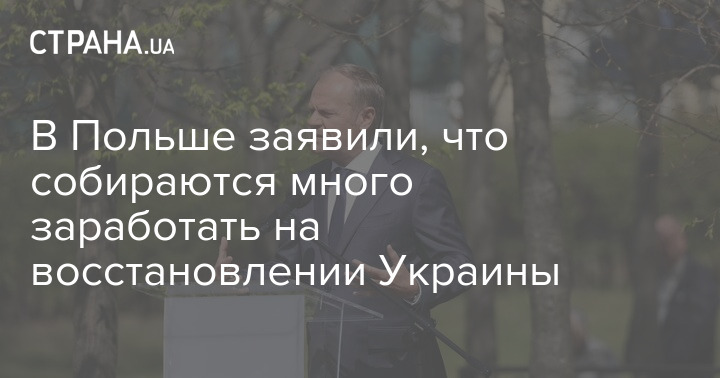 Польща має намір отримати вигоду та багато заробити на відновленні України. Про це заявив прем'єр-міністр країни Дональд Туск на пресконференції під час візиту до польського Славкува, де розташований великий контейнерний термінал.