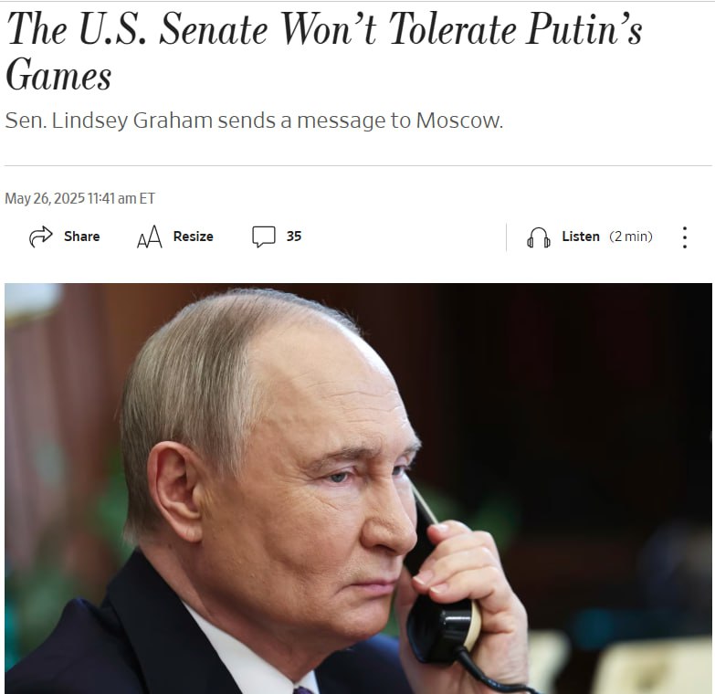 Про це заявив сенатор Ліндсі Грем у відкритому листі до російського лідера Володимира Путіна, який публікує газета The Wall Street Journal.
