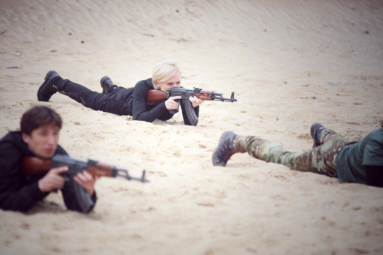 Також Верещук опублікувала фото із полігону, на яких бігає з автоматом.