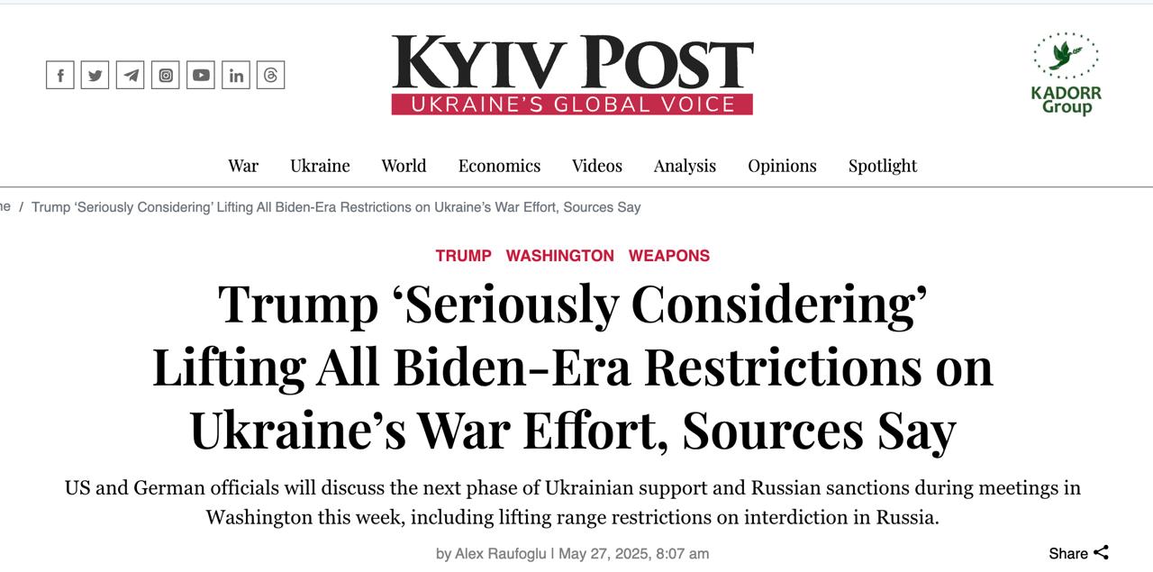 Президент США Дональд Трамп серйозно розглядає можливість зняти всі обмеження, накладені його попередником Джо Байденом на військові дії України.