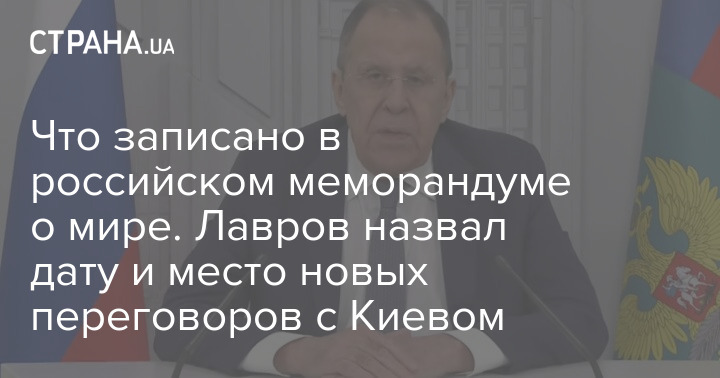 Що записано у російському меморандумі про мир. Лавров назвав дату та місце нових переговорів із Києвом