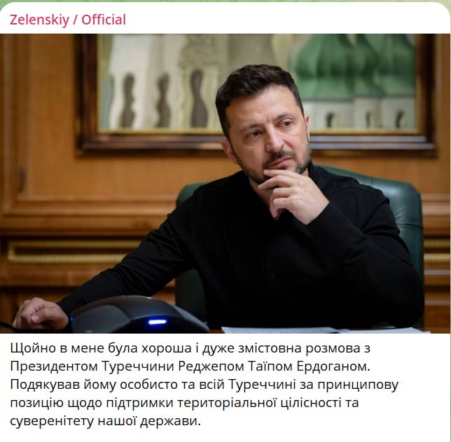 Президент України Володимир Зеленський провів "хорошу і дуже змістовну розмову з президентом Туреччини Реджепом Тайіпом Ердоганом".