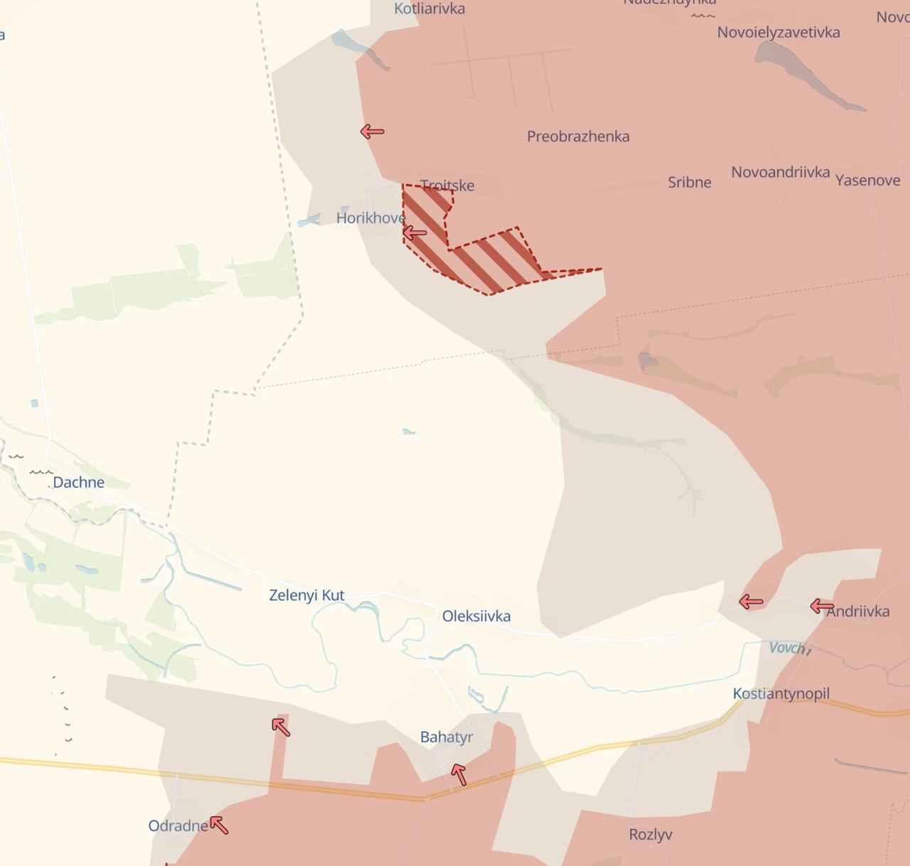 Україна цього не підтверджувала. Військовий ресурс Deep State , як і раніше, не показує заходу росіян до сусіднього регіону, хоча кордон сірої зони вже пролягає по адміністративному кордону в районі села Оріхове практично впритул.