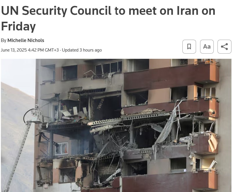 Анонімні джерела видання сказали, що сьогодні ввечері Рада Безпеки засідатиме з приводу ударів Ізраїлю по Ірану.
