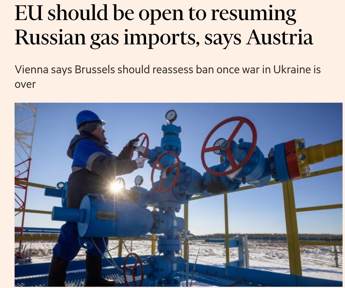 Австрія закликала ЄС залишити можливість відновлення імпорту російського газу у разі укладання мирної угоди щодо України.