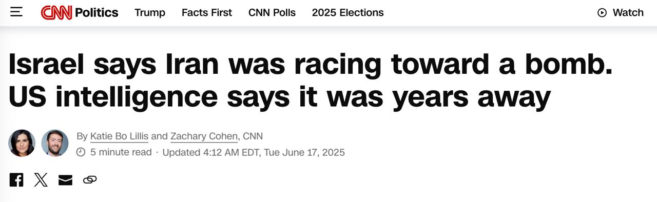 При цьому співробітники розвідки США вважають, що ізраїльські авіаудари затримали розвиток іранської ядерної програми лише на кілька місяців.