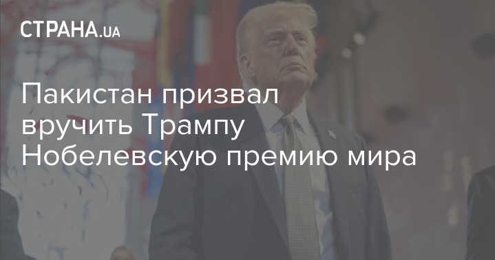Пакистан виступив із закликом вручити президенту США Дональду Трампу Нобелівську премію миру у 2026 році.