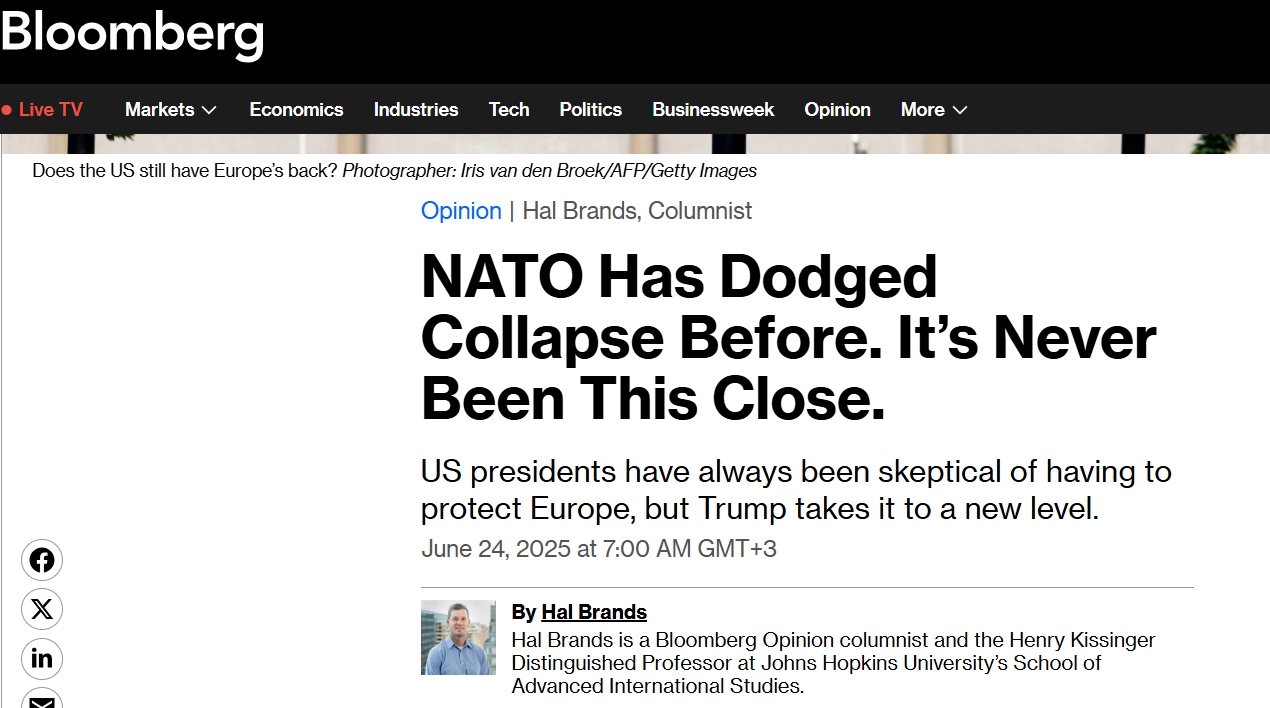 Як зазначає автор, НАТО вже стикалося з розколами через кризу навколо Суецького каналу, війну в Іраку та відмову Франції від участі у військовому командуванні. Однак сьогоднішня ситуація небезпечніша за інші та наближає НАТО до розпаду за всю 75-річну історію організації.