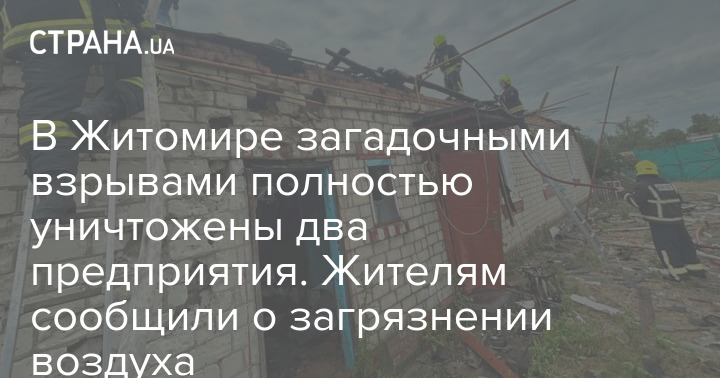 Вибухи у Житомирі сталися на території двох виробничих об'єктів.