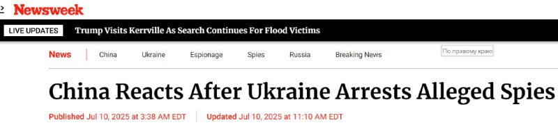 Китай відреагував на арешти в Україні шпигунів, повідомляє журнал Newsweek. МЗС Китаю заявило, що продовжує перевіряти інформацію про арешт в Україні двох своїх громадян.