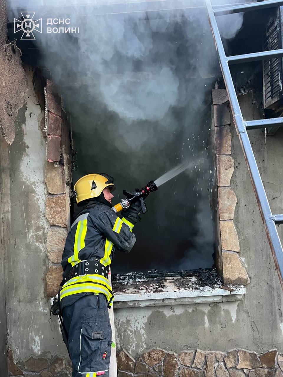 У Луцьку внаслідок нічної атаки сталося загоряння одноповерхового житлового будинку, повідомляє ДСНС.