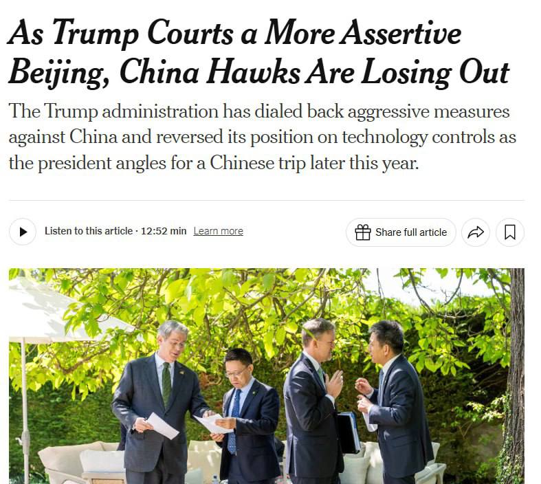 "Тепер же адміністрація вважала за краще завоювати прихильність Китаю", - пише NYT.