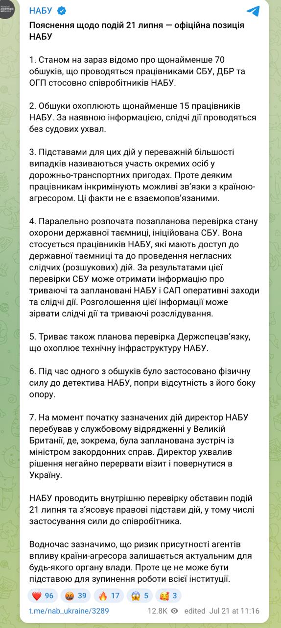 Також у заявах антикорупційних органів йдеться, що ці дії СБУ вчиняє в той час, як керівники НАБУ та САП перебувають за кордоном.