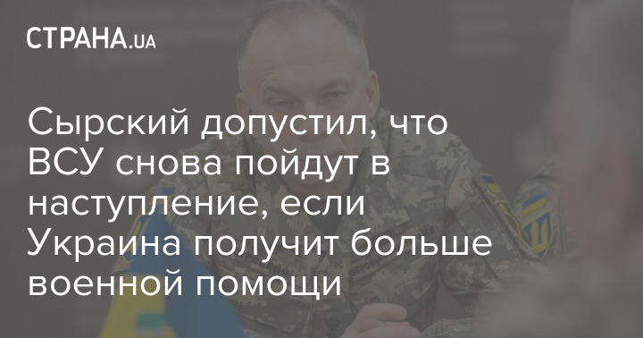 Сирський припустив, що ЗСУ знову підуть у наступ, якщо Україна отримає більше військової допомоги