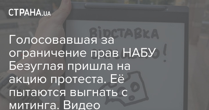 Протестувальники у Києві проти обмежень повноважень Національного антикорупційного бюро України та Спеціалізованої антикорупційної прокуратури спробували вигнати народного депутата Мар'яну Безуглую.