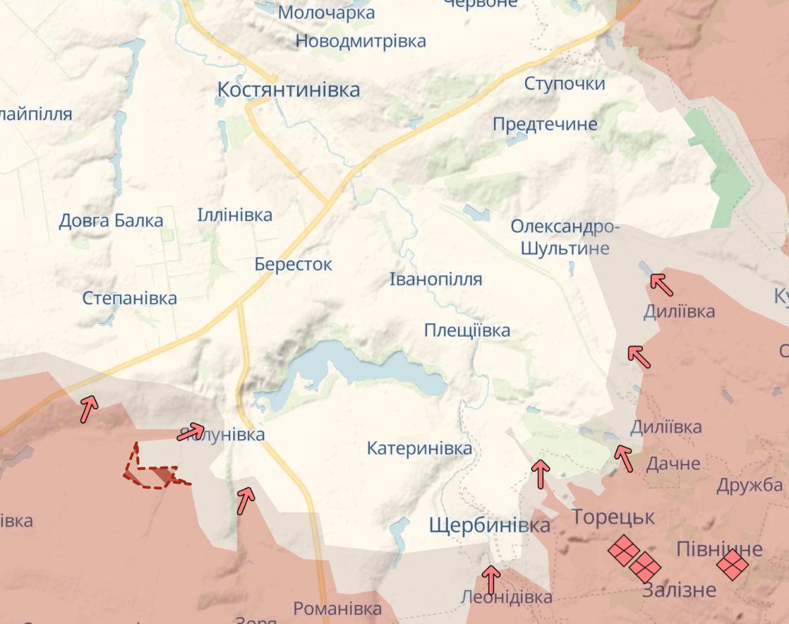 Також згідно з картою Deep State росіяни просунулися під Костянтинівкою - біля Яблонівки. РФ напередодні заявляла про повне захоплення Яблонівки.