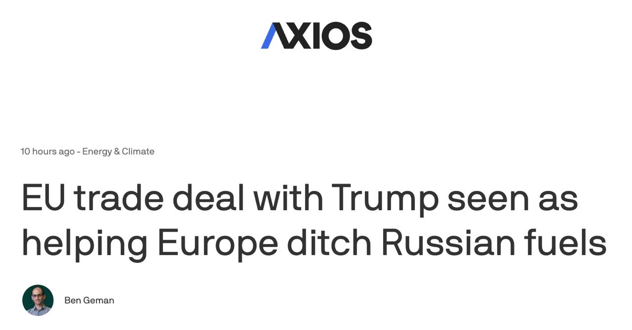 Як уже повідомлялося, Євросоюз має закупити у США енергоносії на суму 750 млрд доларів.