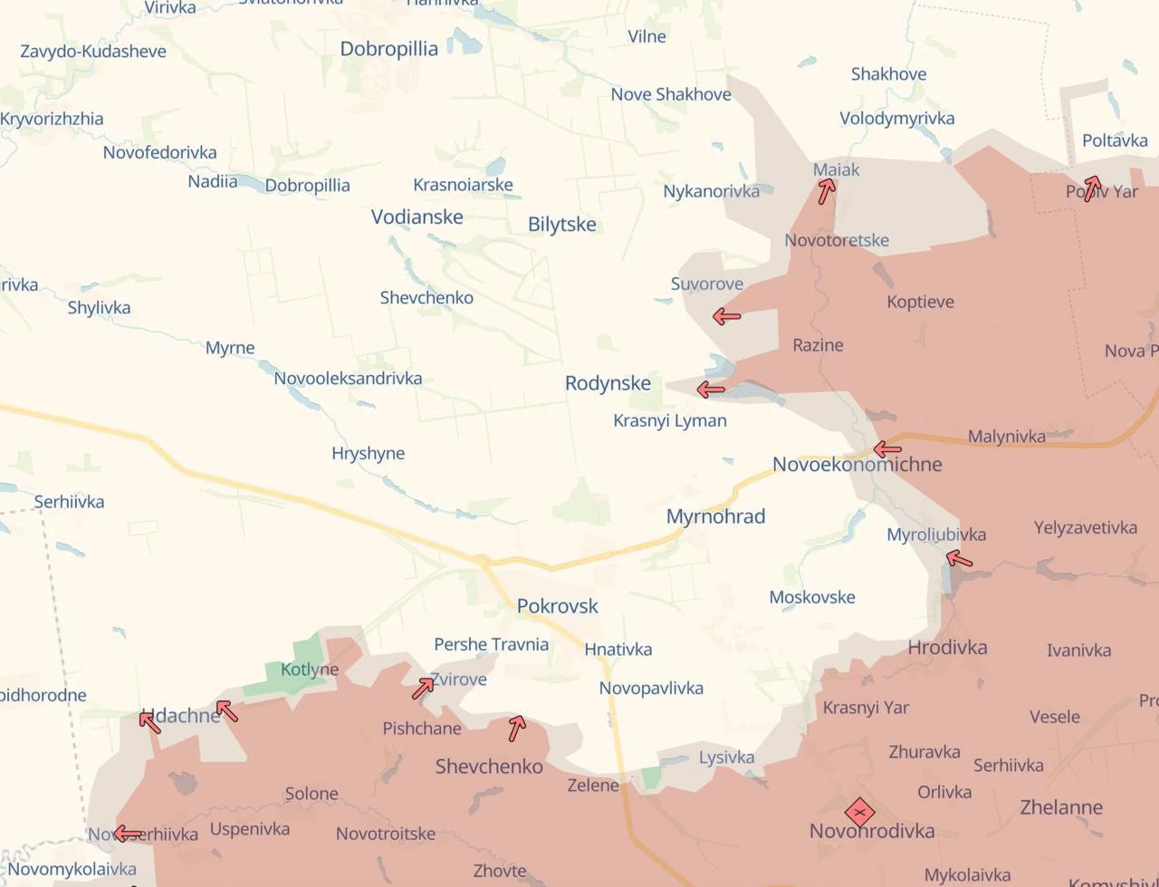 "Якщо окупанти візьмуть під контроль Родинське, то фактично перекриють в'їзди до Покровська", - пишуть українські військові паблики.