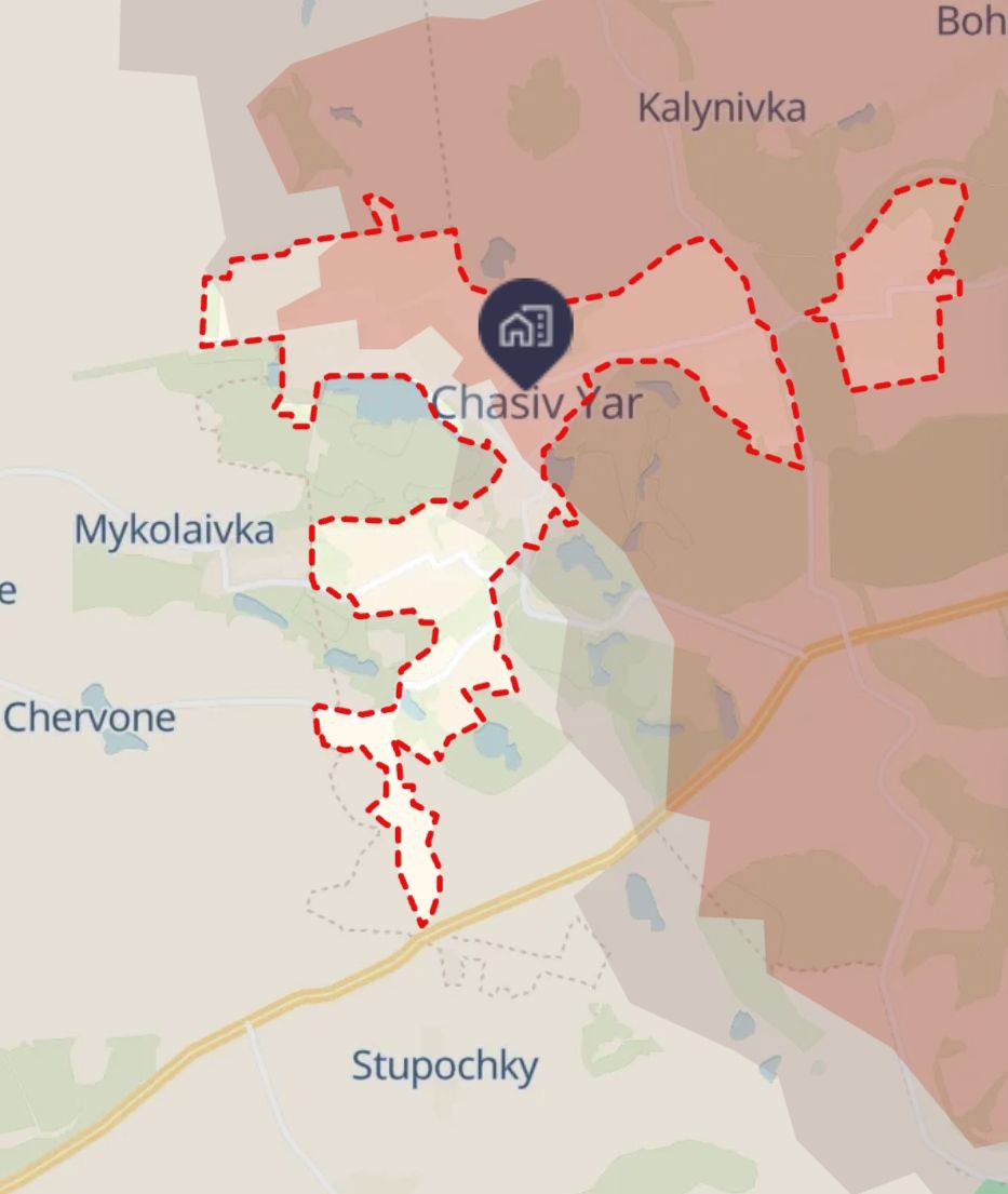 Міноборони РФ тим часом говорить про повне захоплення Часового Яру. МО РФ заявило про вихід на околиці мікрорайонів Шевченка та Південного, показавши кадри з окраїнних районів міста, які наразі складно ідентифікувати.