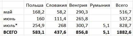 Сумарно в липні у Словаччині та Угорщині було закуплено близько 570 млн. кубів газу, що склало майже 70% від загального імпорту.