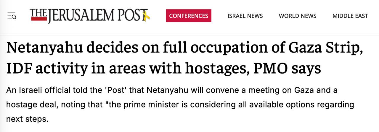 "Жереб кинутий: ми йдемо до повної окупації сектора Газа", - сказав близький до Нетаньягу чиновник.