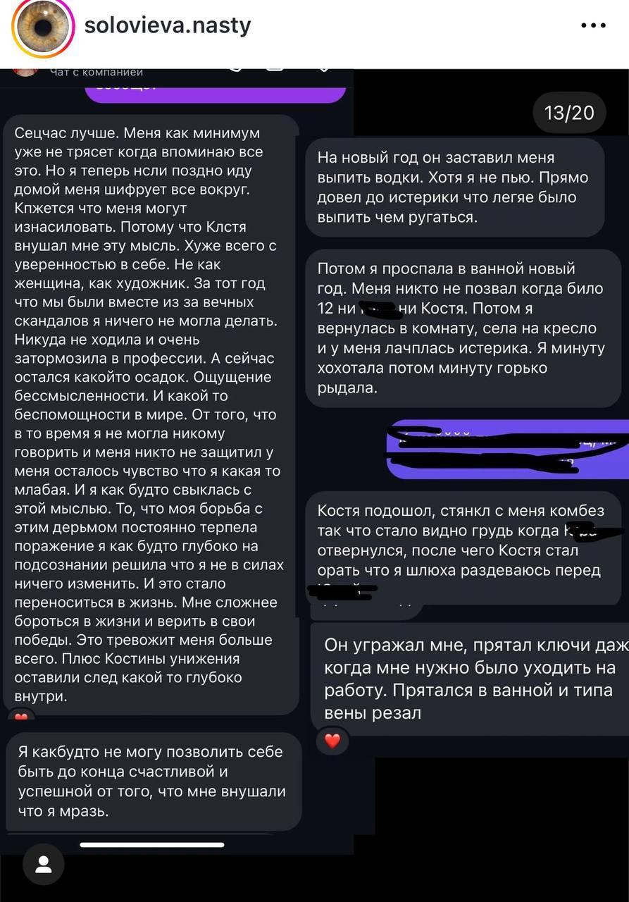 Про це повідомляють жертви артиста, публікуючи його листування з ними.