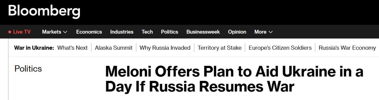 Агентство називає цей формат "НАТО-Лайт". План Мелоні не передбачає членства України в Альянсі, але пропонує механізм колективної допомоги, схожий на п'яту статтю статуту блоку, і дозволяє швидко узгодити заходи у відповідь у разі введення військ, зазначають співрозмовники агентства.