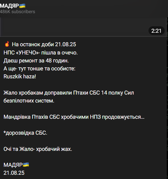 Станція "Унеча" є найбільшим вузлом магістрального нафтопроводу "Дружба". Об'єкт вже атакували в ніч проти 13 серпня.