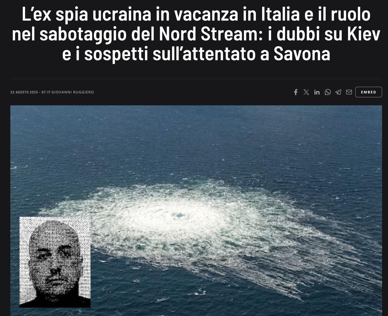 Нагадаємо, вчора в Італії затримали українця, якого підозрюють у координації диверсії на "Північних потоках". WSJ повідомляв, що затриманий українець Сергій Кузнєцов є відставним капітаном ЗСУ і служив у СБУ.
