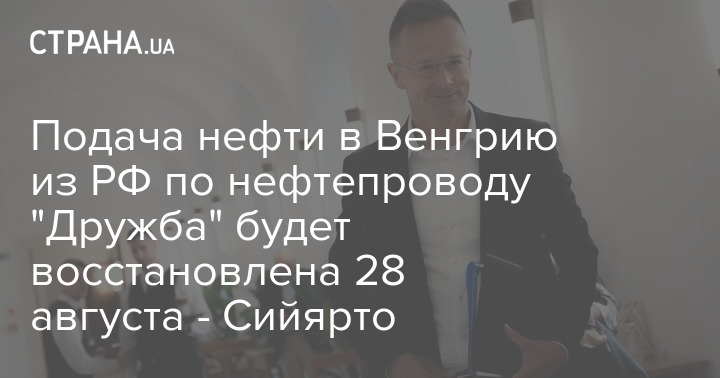 Подання нафти з Росії до Угорщини нафтопроводом "Дружба" буде відновлено 28 серпня.