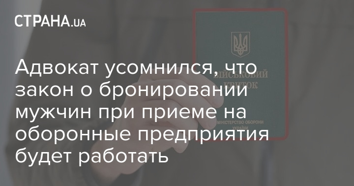 Військовий адвокат Олег Леонтьєв сумнівається у тому, що закон про надання броні від мобілізації чоловікам одразу після прийому на роботу на оборонні підприємства працюватиме.