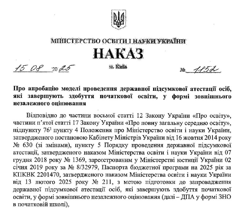 З 2027 року українські школярі після закінчення 4-го класу обов'язково проходитимуть державну підсумкову атестацію (ДПА) у форматі зовнішнього незалежного оцінювання (ЗНО).