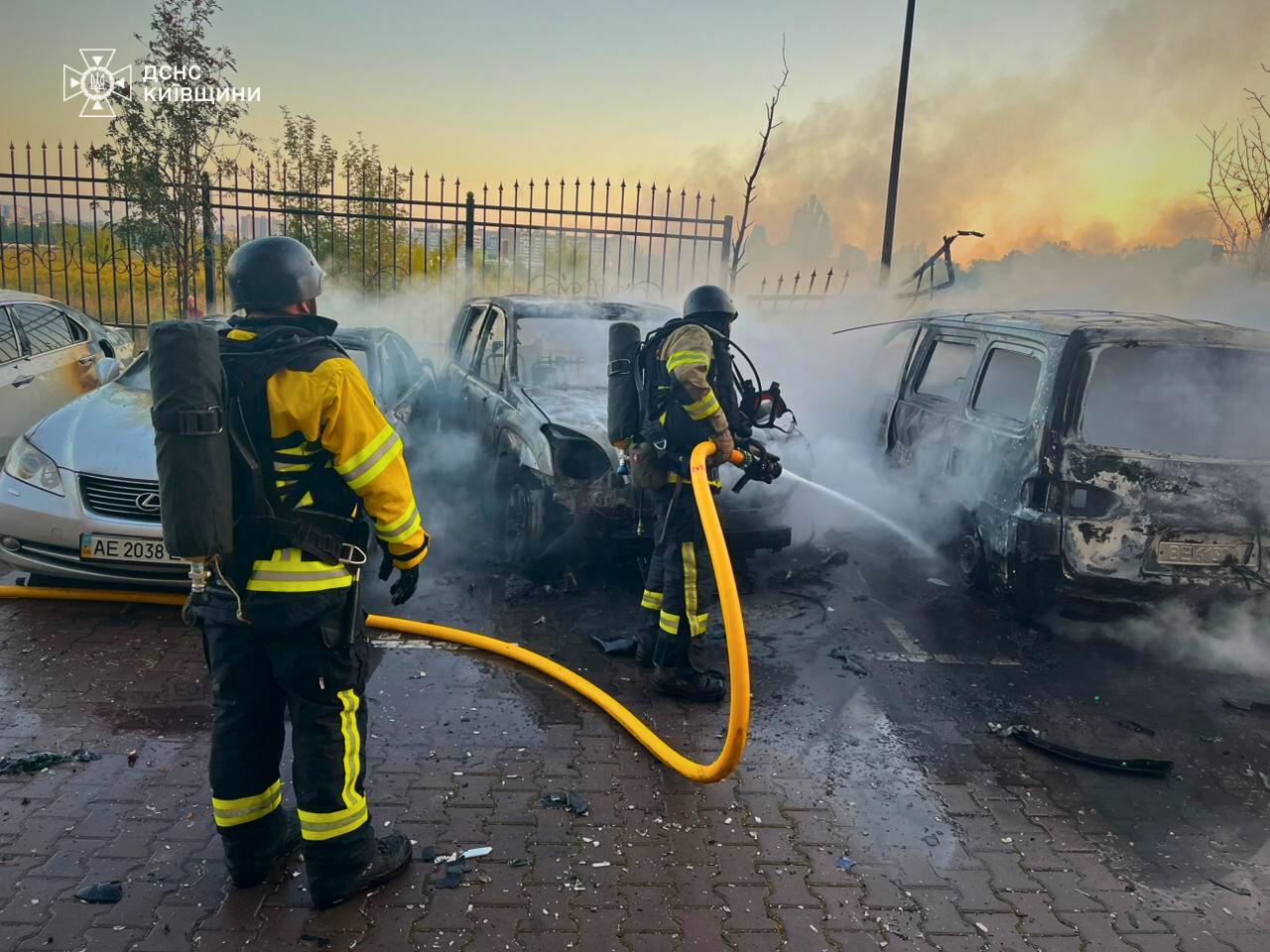 - У Бучанському районі уламки збитої мети впали на територію житлової інфраструктури, через що сталося спалах 5 легкових автомобілів.