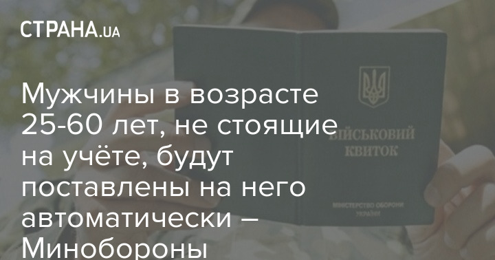 "Всі громадяни України чоловічої статі від 25 до 60 років, які не перебували на військовому обліку без законних підстав, будуть поставлені на такий облік автоматично. Це знизить кількість ручних операцій та потребу відвідувати ТЦК", - заявляє Міноборони.