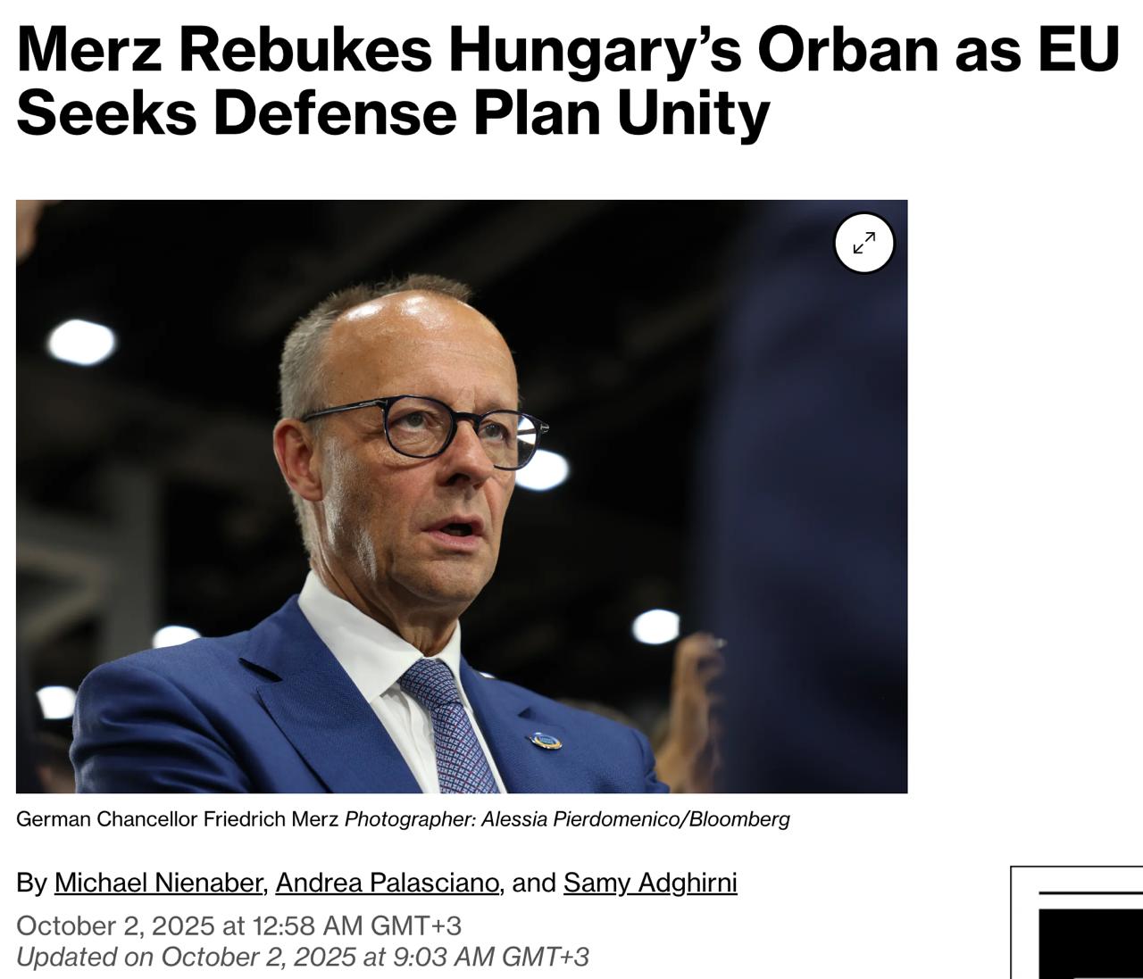 Канцлер Німеччини Фрідріх Мерц та прем'єр-міністр Угорщини Віктор Орбан публічно посварилися на вчорашньому саміті у Копенгагені.