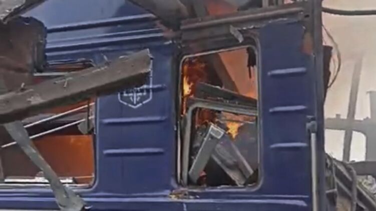 ЗС РФ атакували залізничний вокзал у Шостці, спалахнув пасажирський потяг. Відео