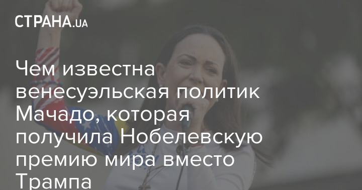 Венесуельська правозахисниця Марія Коріна Мачадо сьогодні стала лауреатом Нобелівської премії миру, яку дуже сподівався здобути президент США Дональд Трамп.