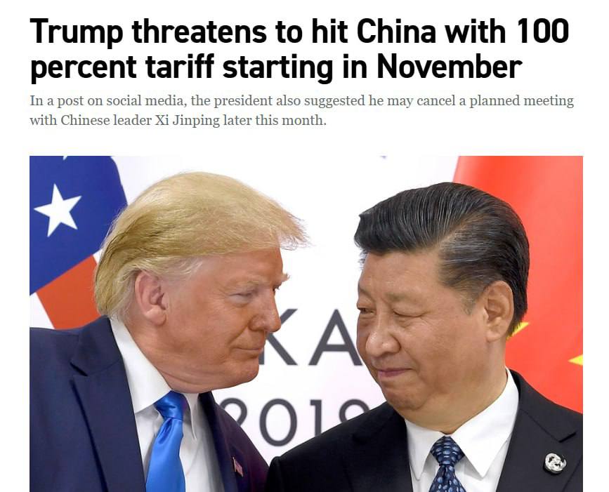 100-відсотковий тариф для Китаю фактично поновить ембарго на китайські товари, констатує видання. Оголошення Трампа також може ознаменувати собою рішучий кінець тендітного торговельного перемир'я, яке США та Китай підтримували з травня. Вона також свідчить про те, що посилення контролю Пекіна над критично важливими для Китаю постачаннями корисних копалин зводить нанівець стратегію Білого дому щодо зниження торговельних суперечностей напередодні довгоочікуваної зустрічі Трампа та голови КНР Сі Цзіньпіна в Південній Кореї наприкінці жовтня.