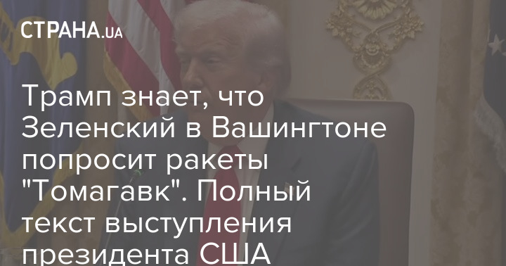 Президент США Дональд Трамп заявив, що український президент Володимир Зеленський на зустрічі у Вашингтоні у п'ятницю, 17 жовтня, попросить про постачання ракет "Томагавк", але не сказав, що йому відповість.