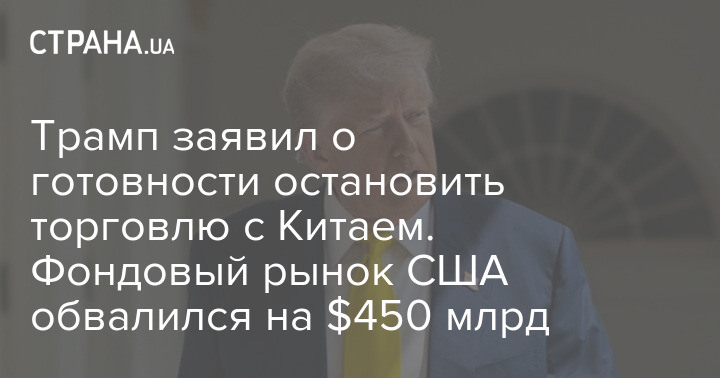 Трамп заявив про готовність зупинити торгівлю із Китаєм. Фондовий ринок США впав на $450 млрд